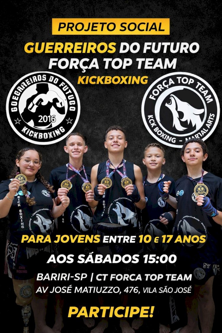 “Estamos retornando com o nosso projeto social aos sábados, na Vila São José no Centro de Treinamento (CT) da Força Top Team. Podem se inscrever crianças e adolescentes na faixa etária 10 a 17 anos. O Kickboxing é uma excelente ideia de treino, principalmente para as meninas, que aprendem defesa pessoal, adquirem confiança e etc”, explica o idealizador Carlos Aguiar.