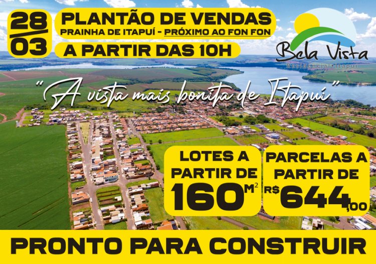 “Nosso plantão no dia 28 de março, às 10h, será uma oportunidade única na Prainha de Itapuí! Escolhemos esse local por ser o cartão-postal da cidade e porque o Jardim Bela Vista oferece justamente essa vista privilegiada para um dos pontos mais bonitos da região”, finaliza o consultor.
