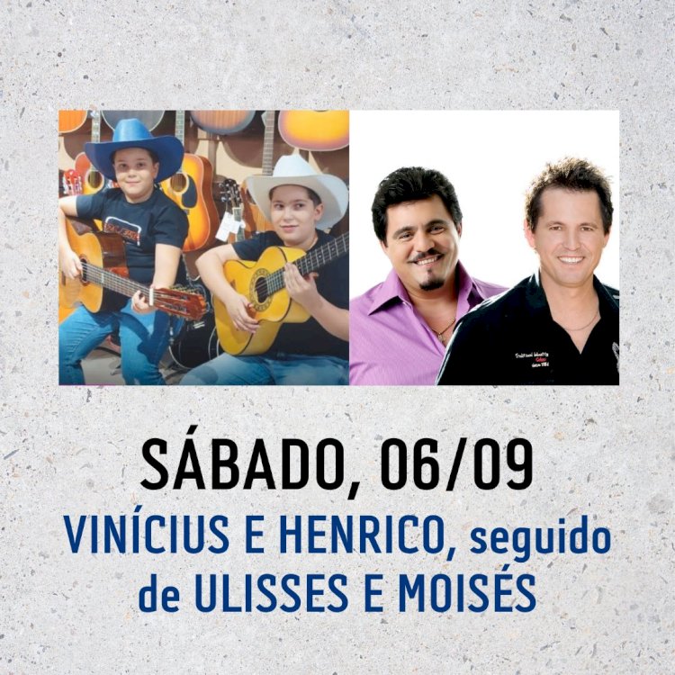 Nove atrações musicais irão animar a quermesse durante os finais de semana do próximo mês. No sábado (06/09), abertura ficará por conta da dupla Ulisses e Moisés. No domingo (07/09), é a vez do cantor Plínio fechando o primeiro final de semana. Já no feriado de segunda-feira, 15 de setembro, dia da Padroeira, a animação ficará por conta de Ricardo e Milton Junior.