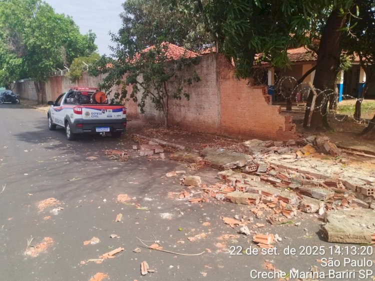 “No início da tarde do dia 22 de setembro, devido aos fortes ventos que atingiram Bariri e região, a Equipe de Proteção e Defesa Civil foi acionada, juntamente com o Corpo de Bombeiros, Polícia Militar e setor de ambulâncias, para deslocamento até a praça da Escola Coeba, atendendo a uma ocorrência de queda de árvore de grande porte, a qual atingiu duas alunas que saiam da escola no momento do ocorrido. Após o resgate e encaminhamento das alunas ao pronto atendimento da Santa Casa, a Defesa Civil deu prosseguimento às ocorrências no município, sendo elas um destelhamento parcial da cobertura da EMEF Profª. Angela Maria Prearo Fortunato, uma queda parcial do muro de fechamento da creche Marina Budin, uma árvore de médio porte caída na avenida Prefeito Domingos Antônio Fortunato obstruindo a via, sendo estas sem vítimas”, diz o órgão.