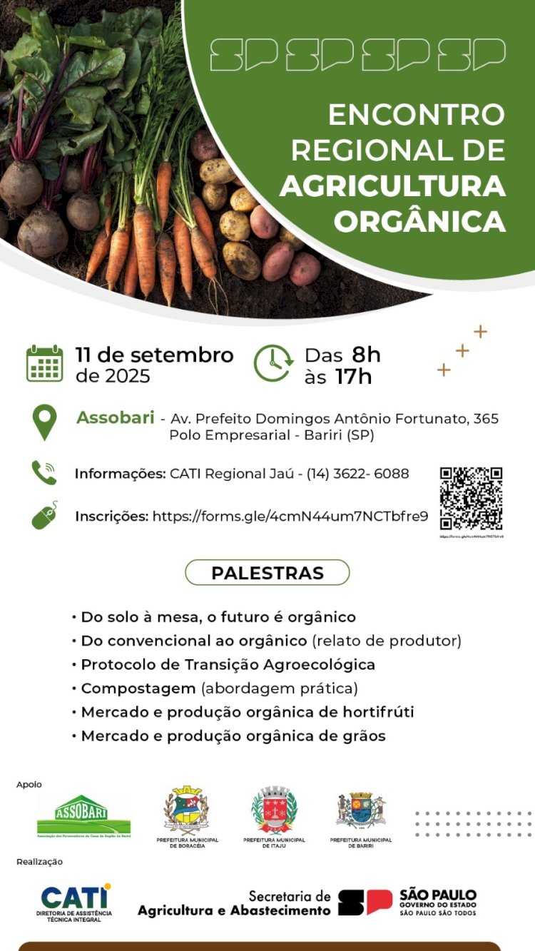“Nos últimos anos houve um aumento na procura de informações sobre a Produção Orgânica de Alimentos seja no aspecto ecológico, de saúde e econômico. As Casas da Agricultura de Bariri e Itaju procurando atender essas demandas, estarão promovendo um encontro sobre Agricultura Orgânica. Teremos um dia todo de palestras visando todos os aspectos da atividade”, ressalta a organização.