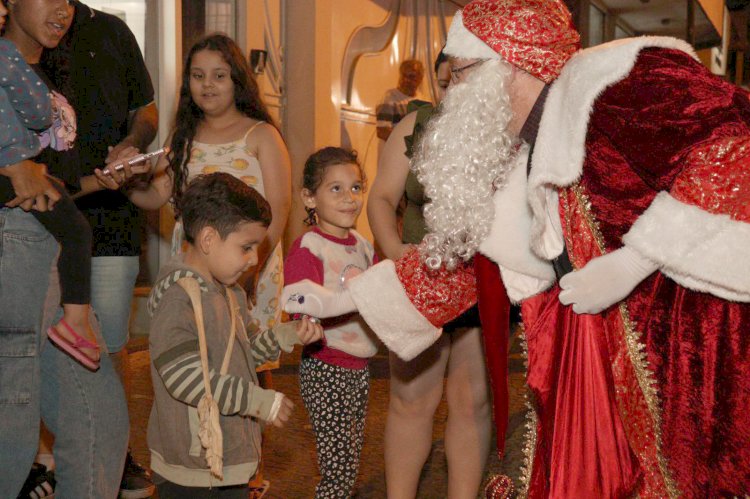 Na Praça da Matriz, além dos tradicionais pisca-piscas dourados, a decoração trouxe uma árvore de Natal de 6 metros, coreto e casinha do Papai Noel. O evento também contou com distribuição de pipoca e algodão-doce para as crianças, além do show da cantora Ana Costa.