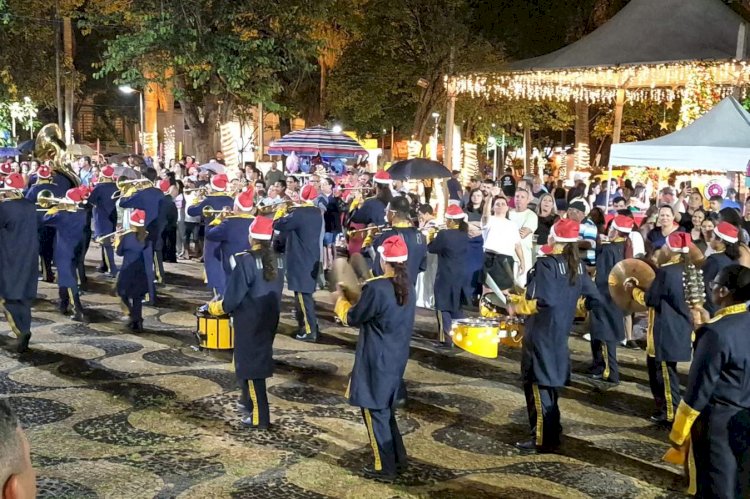 A Banda Marcial Alexandre Giuliano Gallo encantou crianças e adultos na noite desta segunda-feira (08), durante o desfile que marcou o aceder da decoração natalina “Encantos de Natal – Um Novo Tempo Começou”, na Praça da Matriz de Bariri.