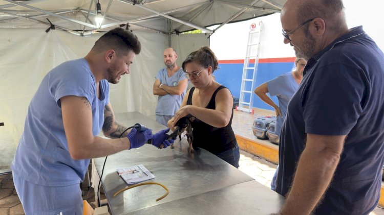 A castração foi realizada no pátio do terminal rodoviário, o prefeito Airton Pegoraro, que também é veterinário, passou pelo local e acompanhou alguns dos procedimentos.