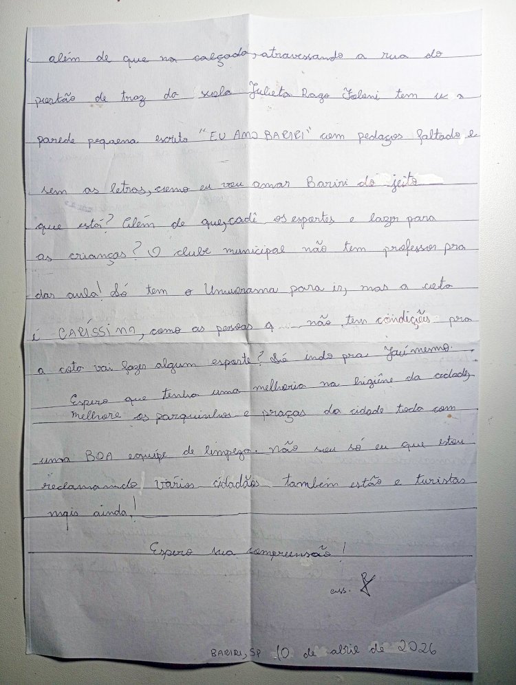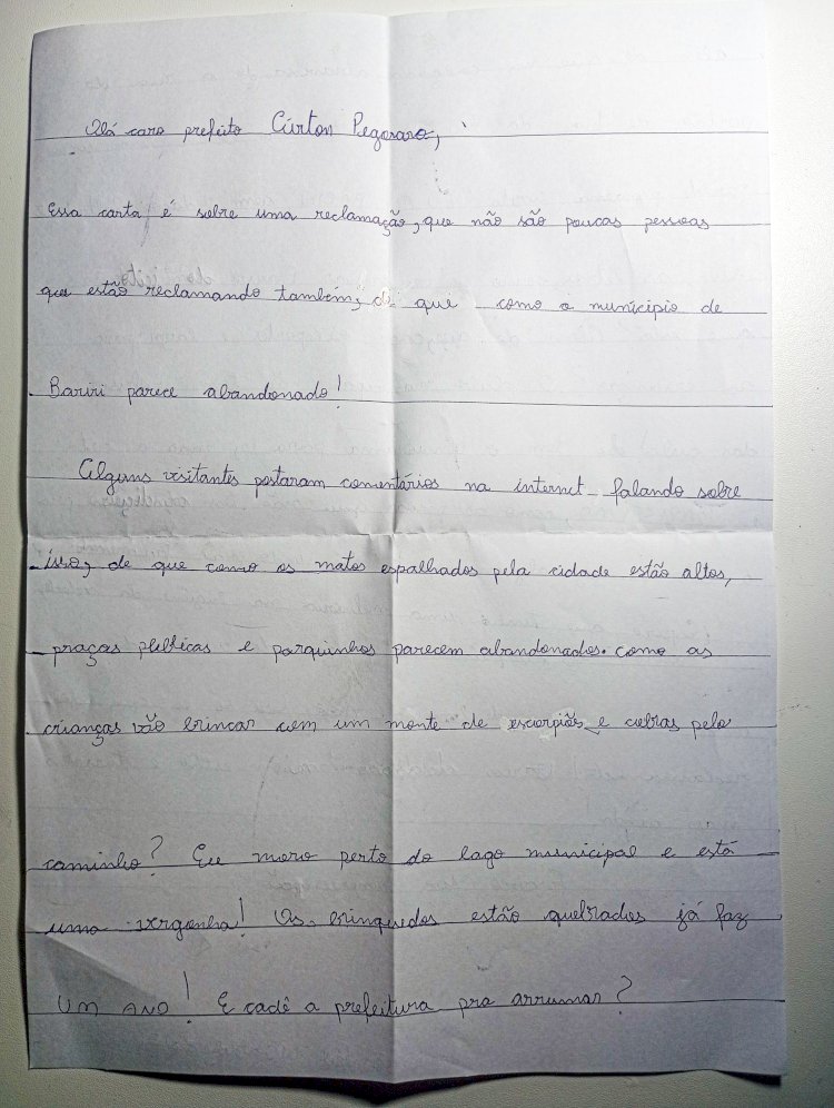 "Como posso amar Bariri do jeito que está?” Criança de 11 anos escreve carta de reivindicação ao prefeito