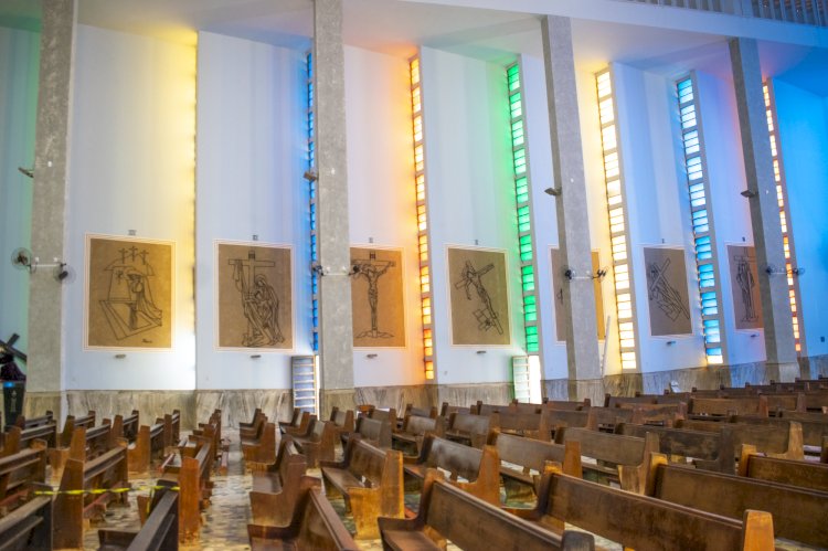 “Tomei a iniciativa de colocar molduras nas imagens da via-sacra e fazer nelas um fundo diferente das paredes, para dar mais destaque àquelas obras feitas em ferro de construção, para valorizar o trabalho do artista que as confeccionou”, continua o sacerdote.