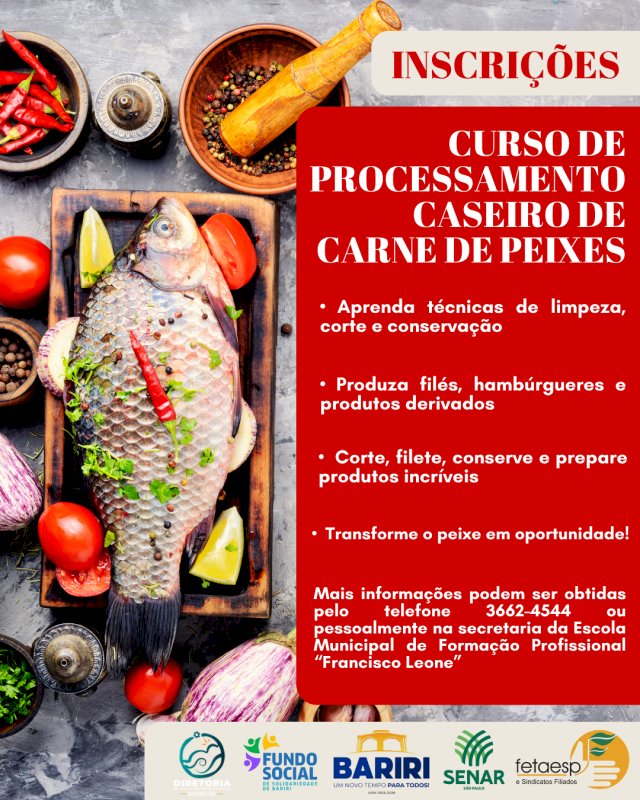 Outra novidade é o curso de Processamento Caseiro de carne de Peixes, também com inscrições já abertas que podem ser feitas nos mesmos dias e horários do curso de soldagem.